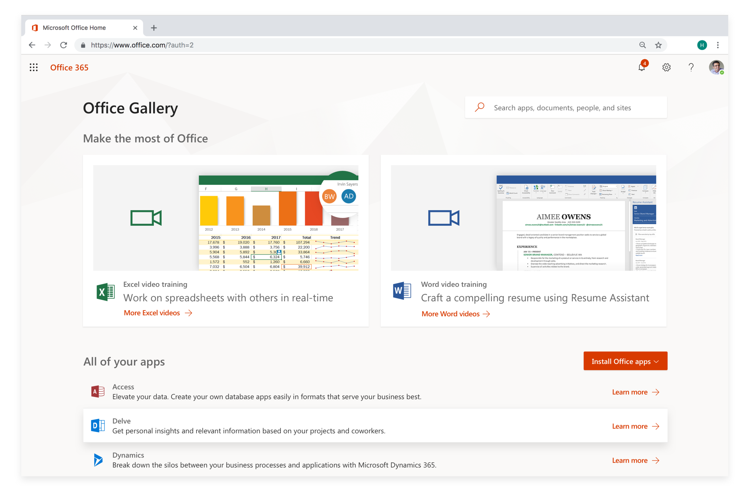 Microsoft Office.com + App Gallery